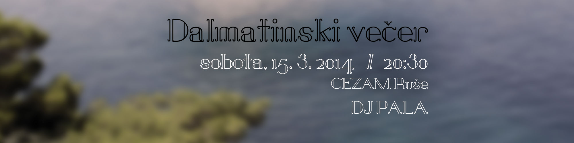 Ugasnite računalnike, izklopite mobilnike in pridite na večer Dalmatinskih pesmi, da skupaj preživimo lep večer ob glasbi, ki jo imamo radi. Vljudno vabljeni na melodije Dalmacije v soboto, 15. 3. 2014, od 20:30 ure dalje.